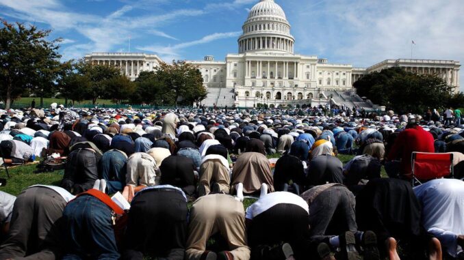 Muslims pray during “Islam on the Capitol Hill 2009” event at the west front lawn of the US Capitol September 25, 2009 in Washington D.C./Photo by Alex Wong Getty Images
