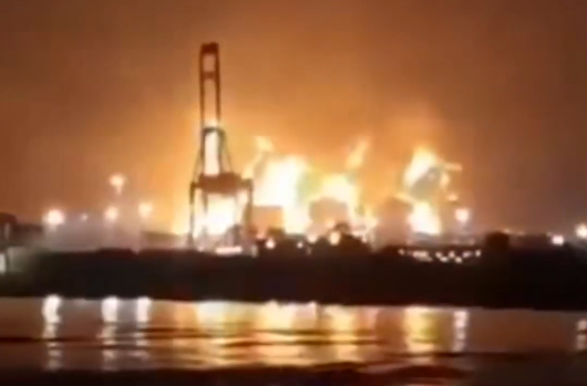 Qatar gas facilities after Iranian attack. Screengrab via Youtube