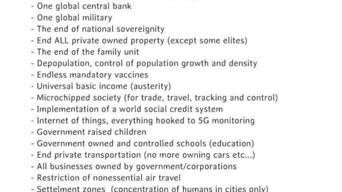 Terms like “one world,” “currency,” “military,” “family unit,” “5G,” “private transportation,” “air travel,” and “synthetic drugs” are not mentioned in the 2030 Agenda, though they are listed in the “new world order.”