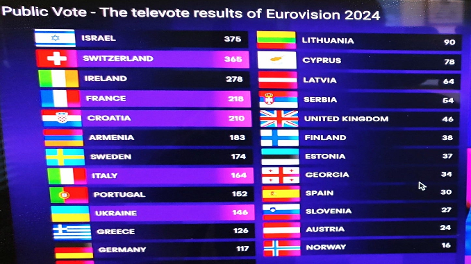 Eurovision – the most-widely watched reality show on the planet admits that the tiny State of Israel – a country one can barely find on a map (and which has been violently colonizing, occupying, and oppressing the world and the galaxies for two thousand years seen on this MAP) won the Eurovision popularity contest for both 2024 and 2025.