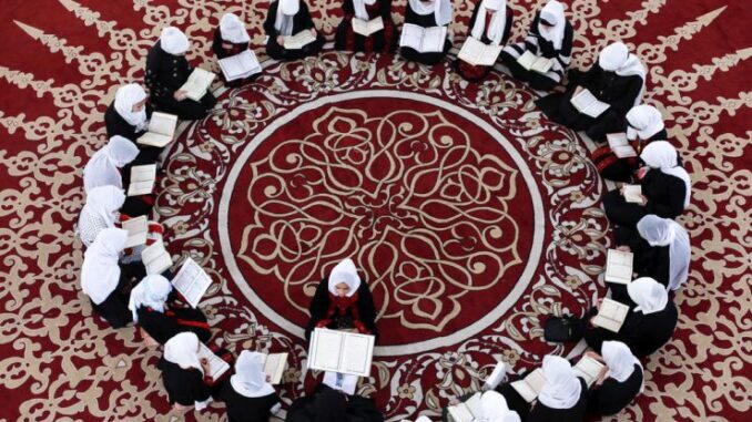 Muslim girls study the Koran during a summer camp at a mosque in Gaza City, June 13, 2023.