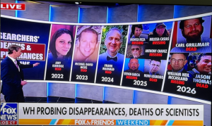 “A possible foreign operation that could be involved here. That’s why they’re investigating.” “There was a meeting at the White House today on the deaths or disappearances of 10 scientists and staffers, many of whom have overlapping connections to some of our most closely held defense and nuclear research space programs, a lot of intersection between that in the work that they were doing.