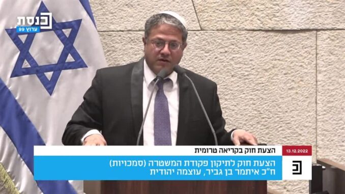 The Knesset plenum on Tuesday evening approved, in a preliminary reading, a bill submitted by MK Itamar Ben Gvir which aims to increase the powers granted to the Minister for National Security.