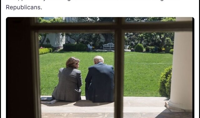 Biden sitting outside with Lisa Monaco, second in charge of the DOJ, probably working on Future Plots and Schemes against Republicans”
