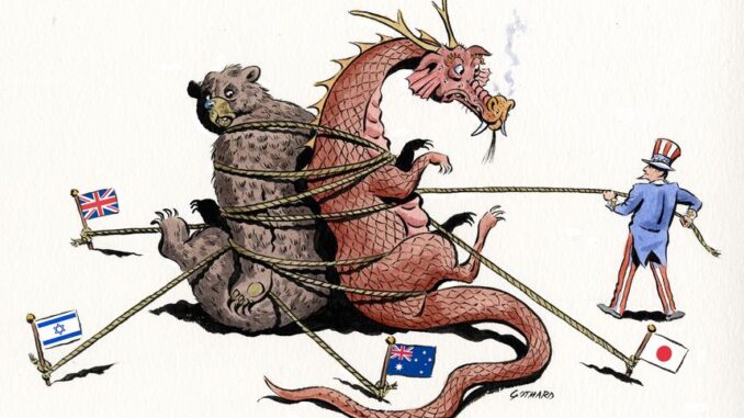When you look at the cartoon used in this article, it describes everything that is wrong with the outlook of the author. The US is forcing the Russians and Chinese to act in concert against the West, even as the US is also working to undermine almost every aspect of Western strength and stability.