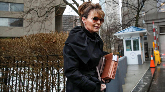 NEW YORK—Former Alaska Gov. Sarah Palin spent her 58th birthday listening to a closing argument by one of her attorneys, as well as one from the defense, in her defamation trial against The New York Times on Feb. 11.