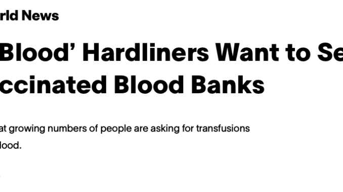 ‘SafeBlood’ Hardliners Want to Set Up Unvaccinated Blood Banks Medics say that growing numbers of people are asking for transfusions of unvaxxed blood.<