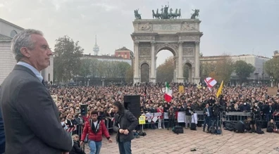 Here is a picture (above) of Robert F. Kennedy Jr. as he is about to give a historic address in Milan, Italy, one of many Italian cities where anti-“green pass” demonstrators have thronged the streets and central plazas, protesting to reclaim their freedom, week after week, all through this fall.