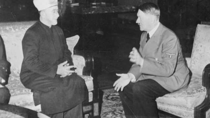 Der Grossmufti von Palästina vom Führer empfangen. Der Führer empfing in Gegenwart des Reichsministers des Auswärtigen von Ribbentrop den Grossmufti von Palästina, Sayid Amin al Husseini, zu einer herzlichen und für die Zukunft der arabischen Länder bedeutungsvollen Unterredung. 9.12.41 Presse Hoffmann
