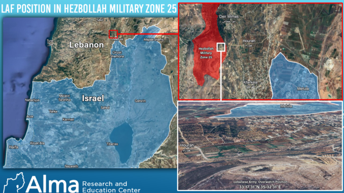 Three Lebanese army troops were injured and one was killed by IDF fire on December 5, 2023, in the Tel Aweida area of southern Lebanon, west of Kafr Kila and south of Deir Mimas. The event occurred in a location where Hezbollah conducts military action and classifies it as a military zone. From this area, Hezbollah launches mortars and rockets and conducts observations towards Israel. Hezbollah activity in this area was targeted around two months ago, on October 15. A Lebanese Army Forces (LAF) base is located near Hezbollah’s operating area. The IDF outpost “Galgalit” operated there until May 2000.