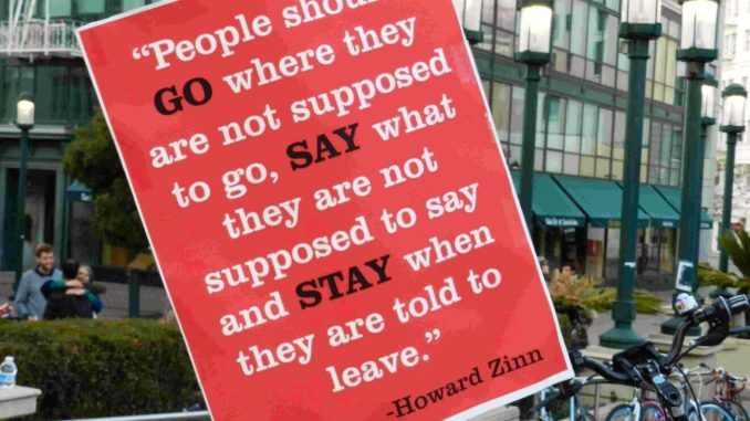 “Occupy Oakland,” Howard Zinn quote, Nov. 12, 2011. Credit: Mercurywoodrose via Wikimedia Commons.