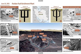 A graphic shared at the press conference today with additional details about the employment of MOPs on Fordow during Operation Midnight Hammer. Photo by United States Department of Defense – https://www.twz.com/air/gbu-57-massive-ordnance-penetrator-strikes-on-iran-everything-we-just-learned, Public Domain, Wikipedia