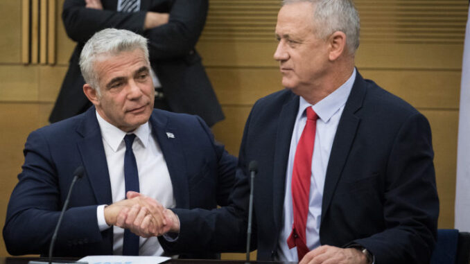 Defense Minister Benny Gantz (right) and Acting Prime Minister Yair Lapid (Flash90/Hadas Parush)