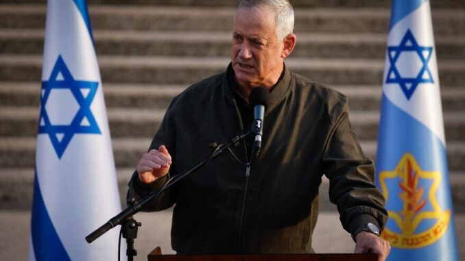 Israeli Defense Minister Benny Gantz gives a statement to the media at the IDF Central Command headquarters in Jerusalem, on March 30, 2022. Photo by Olivier Fitoussi/Flash90.