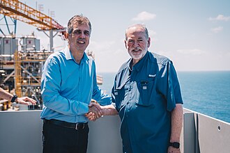 Ambassador Mike Huckabee visits Chevron with Minister of Energy Eli Cohen in Israel on August 18, 2025. Photo by U.S. Embassy Jerusalem – Flickr, CC BY 4.0, Wikipedia