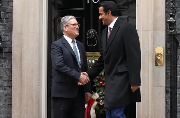 PM Starmer welcomes Emir al Thani. Screengrab via Youtube [Cropped]