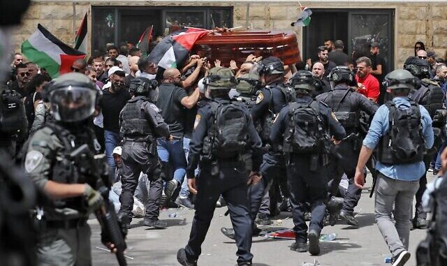 Israeli police said late Friday that officers intervened in the funeral of Al Jazeera journalist Shireen Abu Akleh in Jerusalem earlier in the day after “rioters” seized her coffin at the hospital, against her family’s wishes.