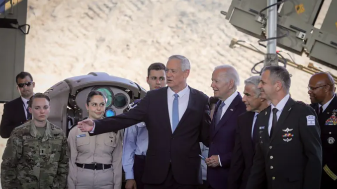 Biden, Lapid and Gantz inspecing Iron Dome Flash90