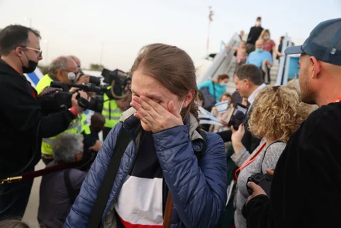 A refugee from the war in Ukraine arriving at Ben-Gurion International Airport, Israel recently Credit: Hadas Parush