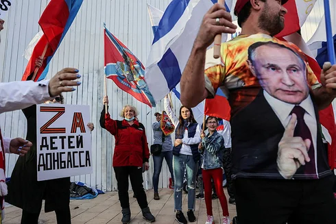 People attending a pro-Russian demonstration amid the war in Ukraine in Tel Aviv, IsraelCredit: Tomer Applebaum