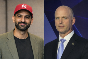 Zohran Mamdani (L), Kevin Roberts (R). Image via AI