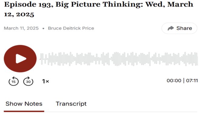 I am thrilled to post education reformer Bruce Deitrick Price’s podcast transcript, March 12, 2025, Let’s Fix Education: Episode 193, Big Picture Thinking: