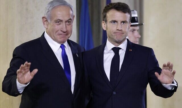 Macron’s remarks, which were not included in the French readout of the meeting at the Elysee Palace, were first reported by Le Monde. An official updated on the details of meeting confirmed the report to The Times of Israel.
