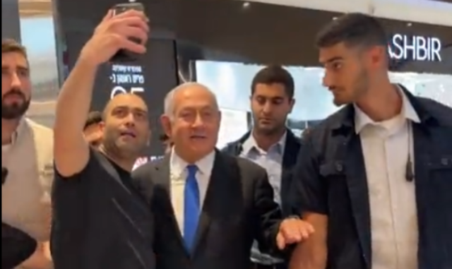 Likud party leader Benjamin Netanyahu tours the Malha Mall in Jerusalem as he kicks off his election campaign for Israel’s 25th Knesset on June 30, 2022. (Screenshot/Facebook)