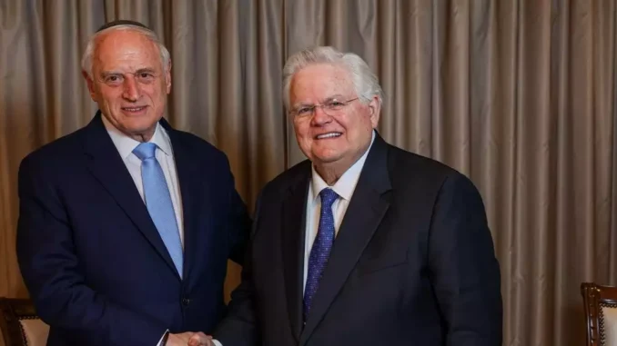 On Sunday, Hagee was awarded two honors for his work on behalf of Israel: one from the Menachem Begin Heritage Center and the second from the Great Synagogue of Jerusalem. Hagee’s friend Malcolm Hoenlein, executive vice chairman of the Conference of Presidents of Major American Jewish Organizations, who also serves as president of the Great Synagogue, was present at both ceremonies. Hagee, 82, was very moved.