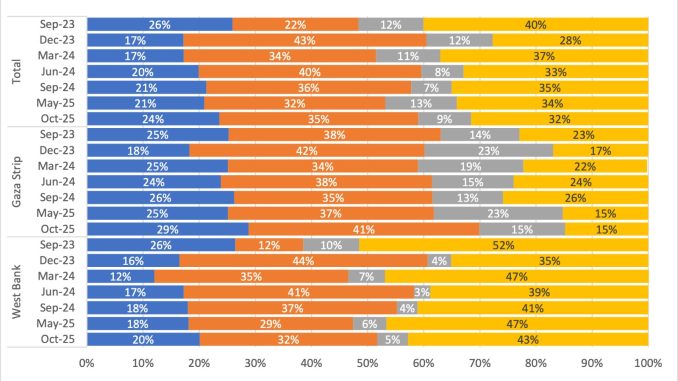 Overall, the survey demonstrates that despite two years of war, in which the IDF inflicted heavy losses on Hamas, and which resulted in the destruction of around 70% of all buildings int he Gaza Strip, the Palestinian people largely continue to support Hamas, and oppose key elements of the Trump peace plan.