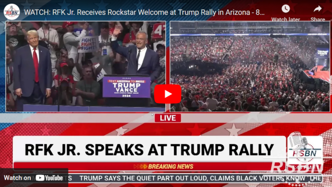 Robert F Kennedy Jr is introduced by President Trump at a MAGA rally in Arizona. According to RFK Jr earlier in the day, President Trump promised a position in the Trump administration. From the remarks tonight, I suspect that position offered is FDA Commissioner.