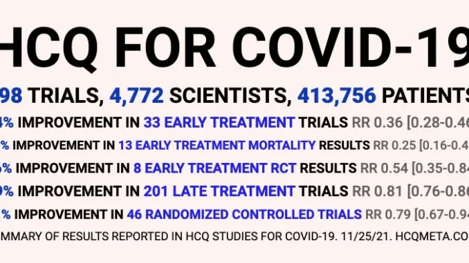There have been 401 Hydroxychloroquine studies (298 when we first cited this website) that show a 64% improvement in patients for COVID-19 patients.