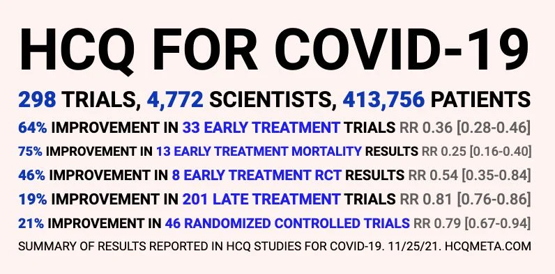There have been 401 Hydroxychloroquine studies (298 when we first cited this website) that show a 64% improvement in patients for COVID-19 patients.