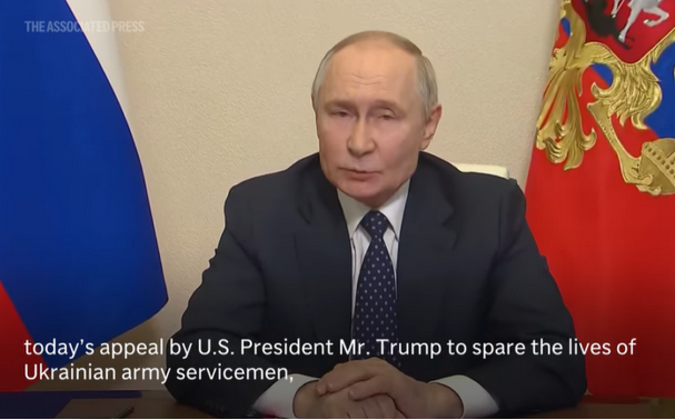 Speaking directly to President Donald Trump’s request for Russia to spare the lives of Ukrainian soldiers surrounded in the Kursk region, President Vladimir Putin says they will be spared if they lay down their arms and surrender.