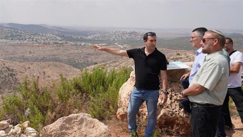 Justice Minister Gideon Sa’ar toured the ‘Gush Ma’arava’ area in Samaria Wednesday and received an overview of the Palestinian Authority’s moves to illegally take over land in Area C.
