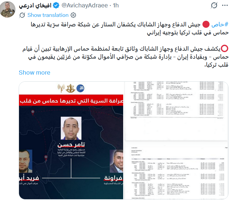 The IDF and Shin Bet unveil a secret Hamas-operated money exchange network at the heart of Turkey, under Iranian direction: