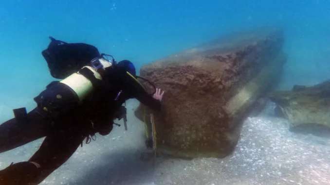 The pieces found off Bait Yanai weigh as much as 12 tons apieceCredit: The underwater archaeology unit at the Israel Antiquities Authority
