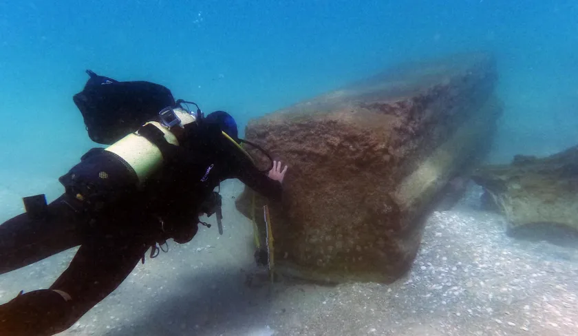 The pieces found off Bait Yanai weigh as much as 12 tons apieceCredit: The underwater archaeology unit at the Israel Antiquities Authority