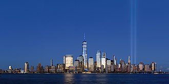 Lower Manhattan from Jersey City September 2020 panorama. Photo by King of Hearts – Own work, CC BY-SA 4.0, Wikipedia
