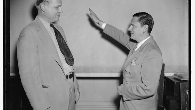 “Heil Hitler” salute given chairman of House Committee investigating un-American activities by first witness. Harris & Ewing, photographer, Public domain, via Wikimedia Commons