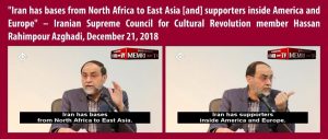 For years, Iran has invested significant effort in cultivating networks of sympathizers, agents, and operatives abroad, including in the U.S., through propaganda, covert influence, and recruitment. The Iranian religious and government establishments openly boast in their official Farsi media that there is support inside the U.S. to do Iran’s bidding. Iranian Supreme Council for Cultural Revolution member Hassan Rahimpour Azghadi said on Iranian TV in December 2018 that Iran’s influence is worldwide, that it “has forces that are willing to sacrifice their lives” and “has bases from North Africa to East Asia… [and] supporters inside America and Europe.”