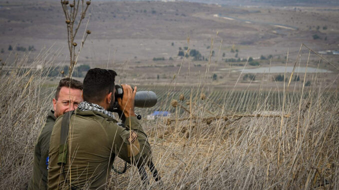 Israeli soldiers watch the Syrian side of the border in the Golan Heights in northern Israel on Oct. 30, 2023. Photo by Michael Giladi/Flash90.