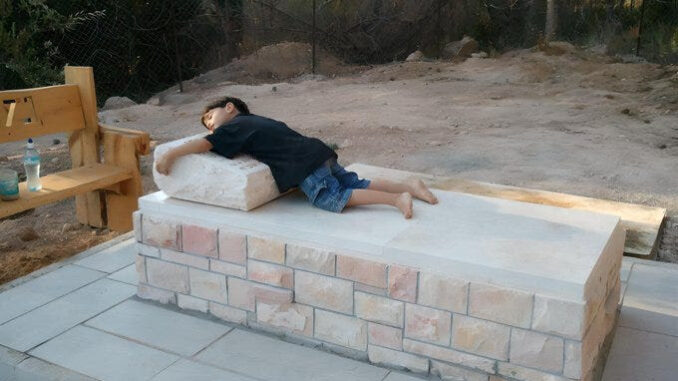 Israeli child hugs his father’s gravestone on Israel’s Remembrance Day (date unknown)