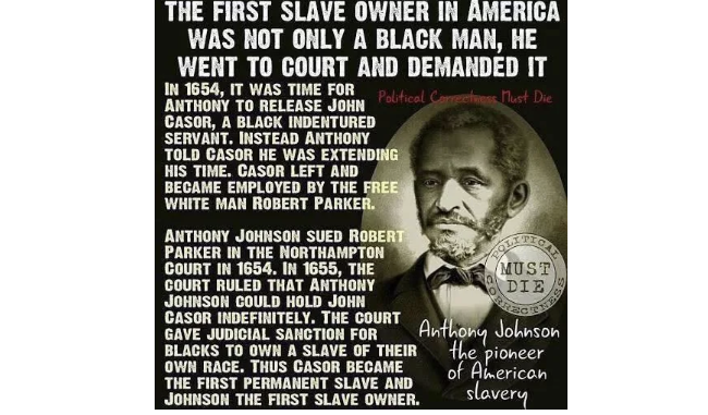 It was REPUBLICANS (Real American Values) who shed their blood to end slavery and free the slaves. Democrats shed their children’s blood to KEEP slavery, then immediately formed the KKK when that didn’t work! (On the eve of the Civil War, not a single slave was owned by a single Republican. ALL were owned by Democrats. And the first slave owner in America? Free Black man Anthony Johnson *see pic at bottom*.)