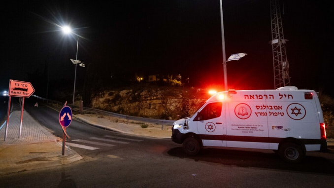 Israeli security forces near the scene of a car-bomb explosion in the settlement of Karmei Tzur in Judea and Samaria on Aug. 31, 2024. Photo by Yonatan Sindel/Flash90.
