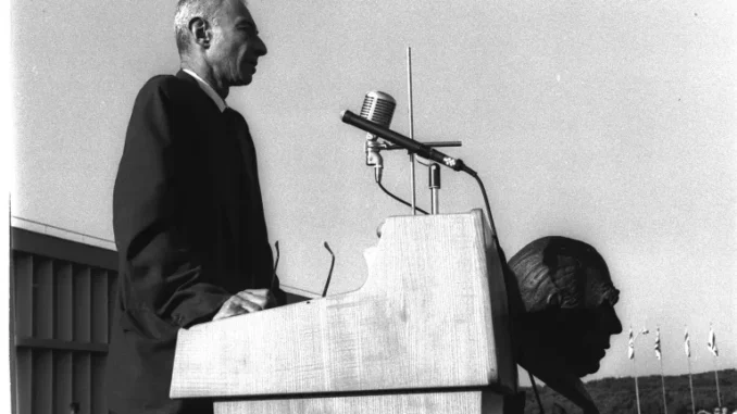 Some four years elapsed before Oppenheimer felt secure enough to accept a new invitation from the Weizmann Institute, as an esteemed guest at an event. By then, the Oppenheimer affair, as well as the entire discredited McCarthy period, had disappeared from the public discourse. The world had marveled at Israel’s sudden military prowess in the Sinai Campaign of 1956. The Soviets’ Sputnik satellite had ushered in the Space Age a year later. And in 1958, Israel celebrated its 10th anniversary. It was an entirely different context, and Oppenheimer would be a welcome and distinguished guest.