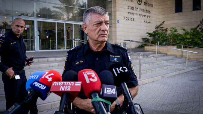 Tel Aviv District Commander Peretz Amar following a failed bombing attack, in Tel Aviv, Aug. 19, 2024. Photo by Avshalom Sassoni/Flash90