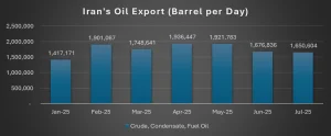 The data show that Tehran managed to export 1.65 mbpd of crude, condensate, and fuel oil in July 2025 — almost identical to the July 2024 exports number. In total, between February and July 2025, Iran exported an average of 1.8 mbpd of crude, condensate, and fuel oil. For the same period in 2024, under the Biden administration, Iran exported an average of 1.85 mbpd.