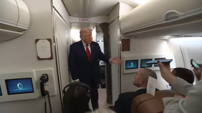 Trump giving press conference on Air Force One.  Screengrab via Youtube