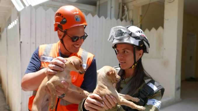 The dogs were located by teams of the Israel Defense Forces’ Home Front Command.